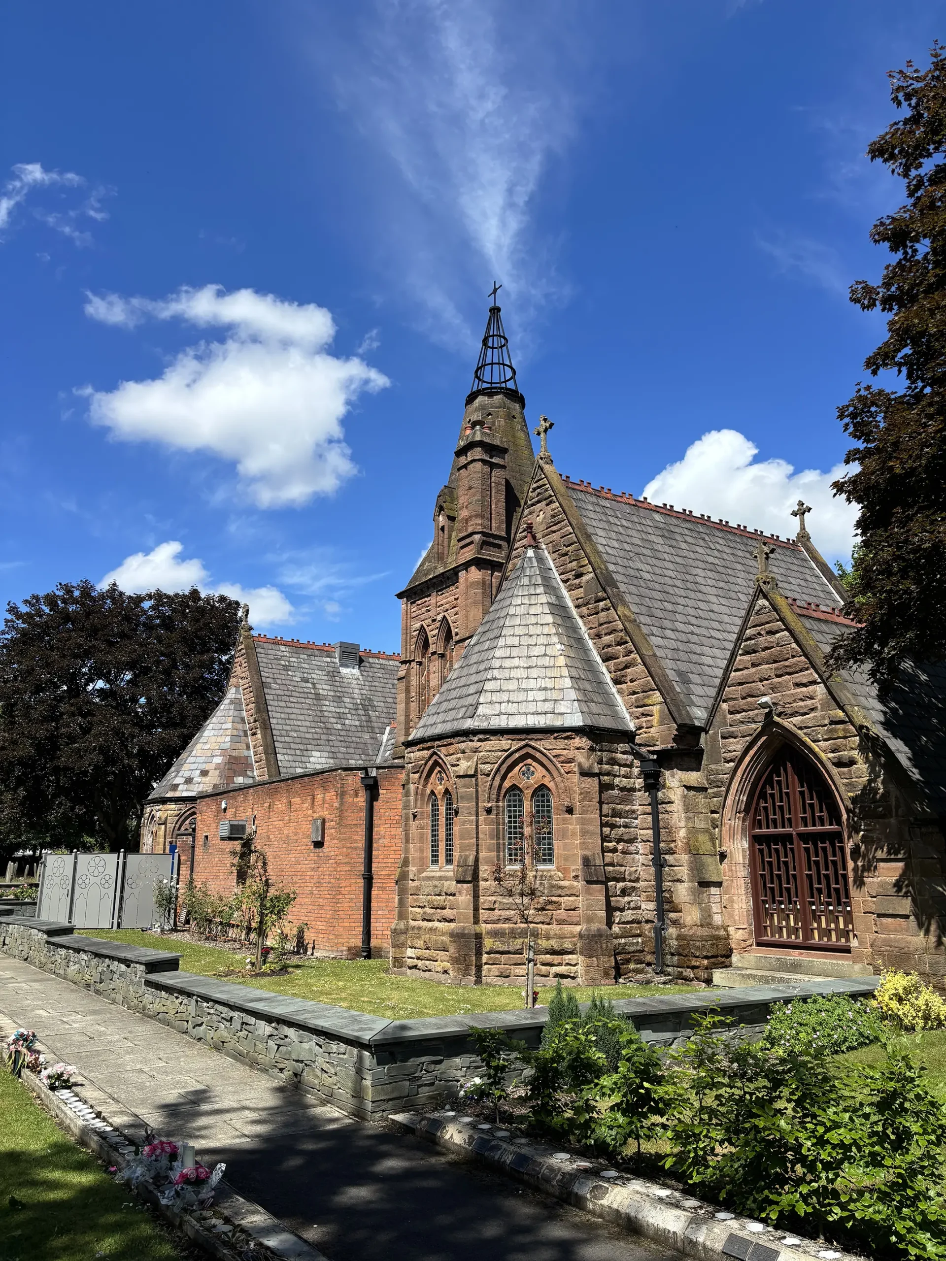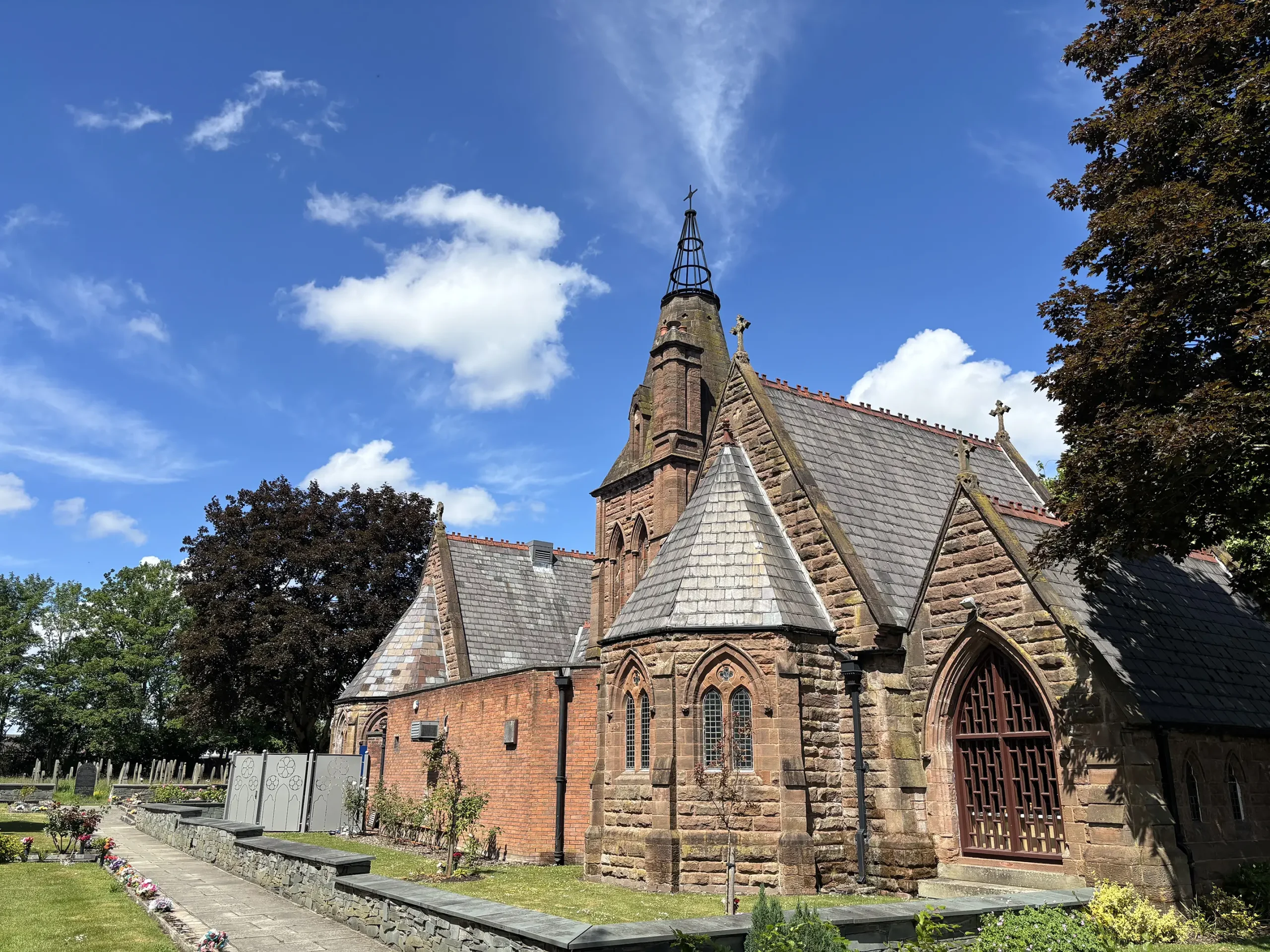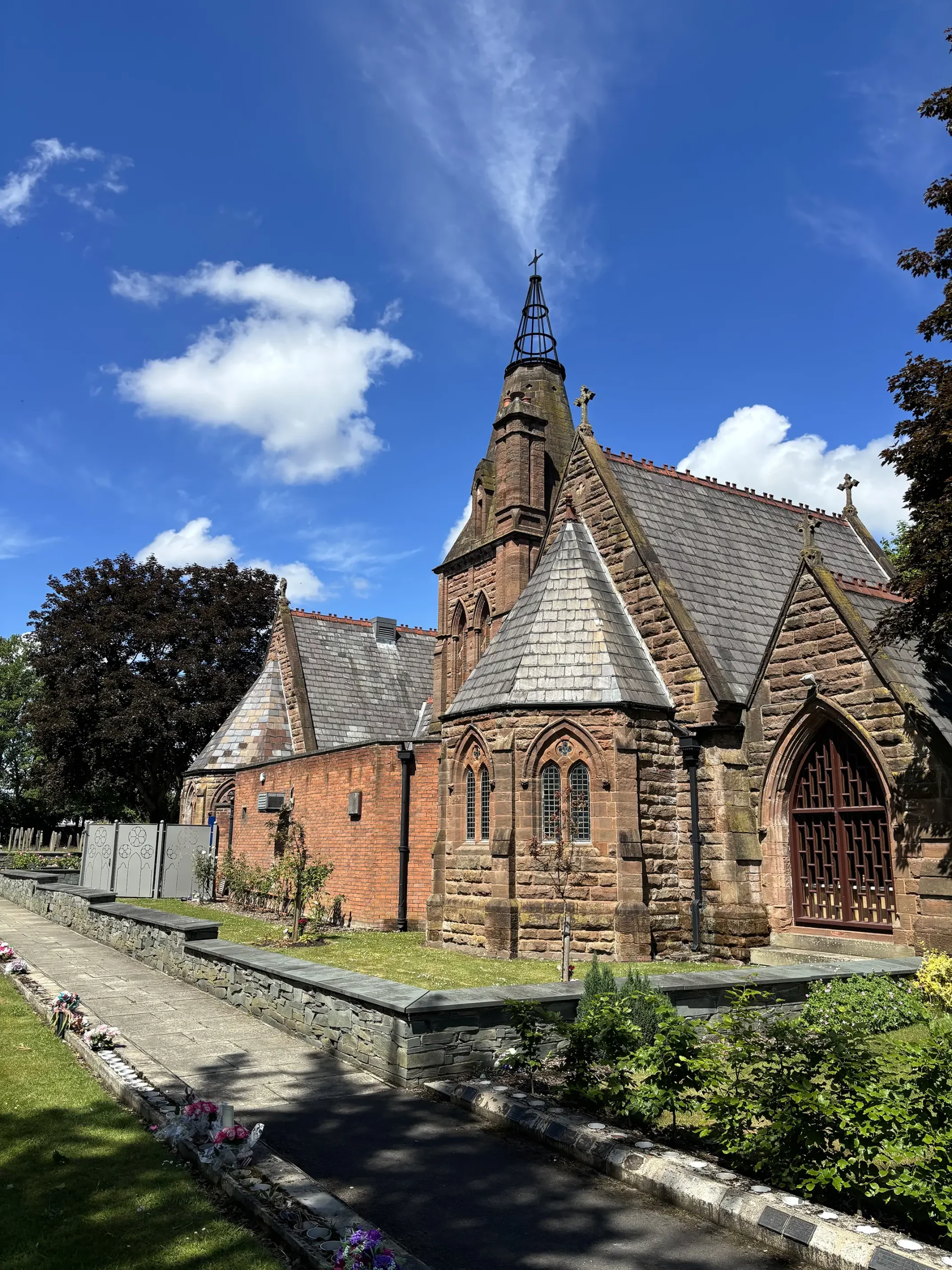 Be greeted by an impressive gateway leading into Widnes Cemetery and Crematorium. The site welcomes you with wide roads and pathways that invite you to explore each quarter. You can park along these roads and enjoy walking the beautiful walkways that gracefully circle the churchyard